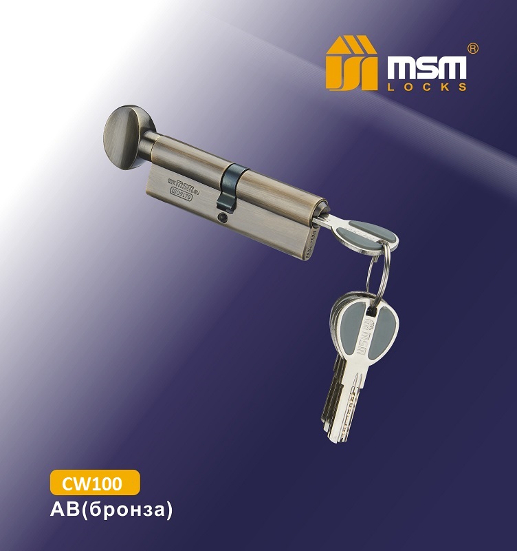 —MSM Цилиндровый механизм с перфо.ключ-верт CW100mm AB (Бронза)