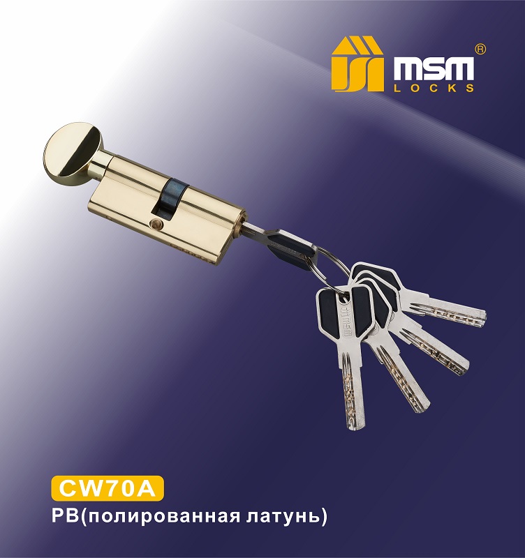 MSM Цилиндровый механизм с перфо.ключ-верт CW70mm PB (Золото)