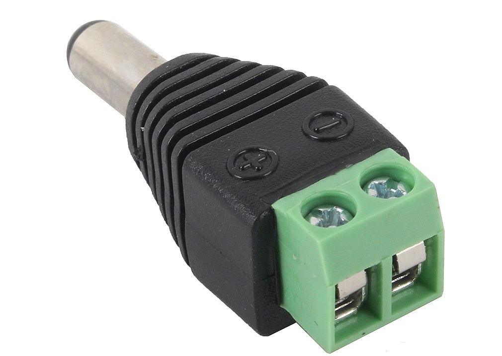 Разъем питания монтируется к кабелю со стороны блока питания, т.к. источник питания имеет разъем DC (папа). Разъем имеет два пина для подключения кабеля.